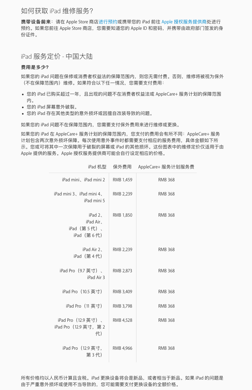 需要付费整机交换维修,有Apple Care+ 费用RMB 368,没有Apple Care+费用 RMB 2,873,可查询iPad 维修 - 官方 Apple 支持