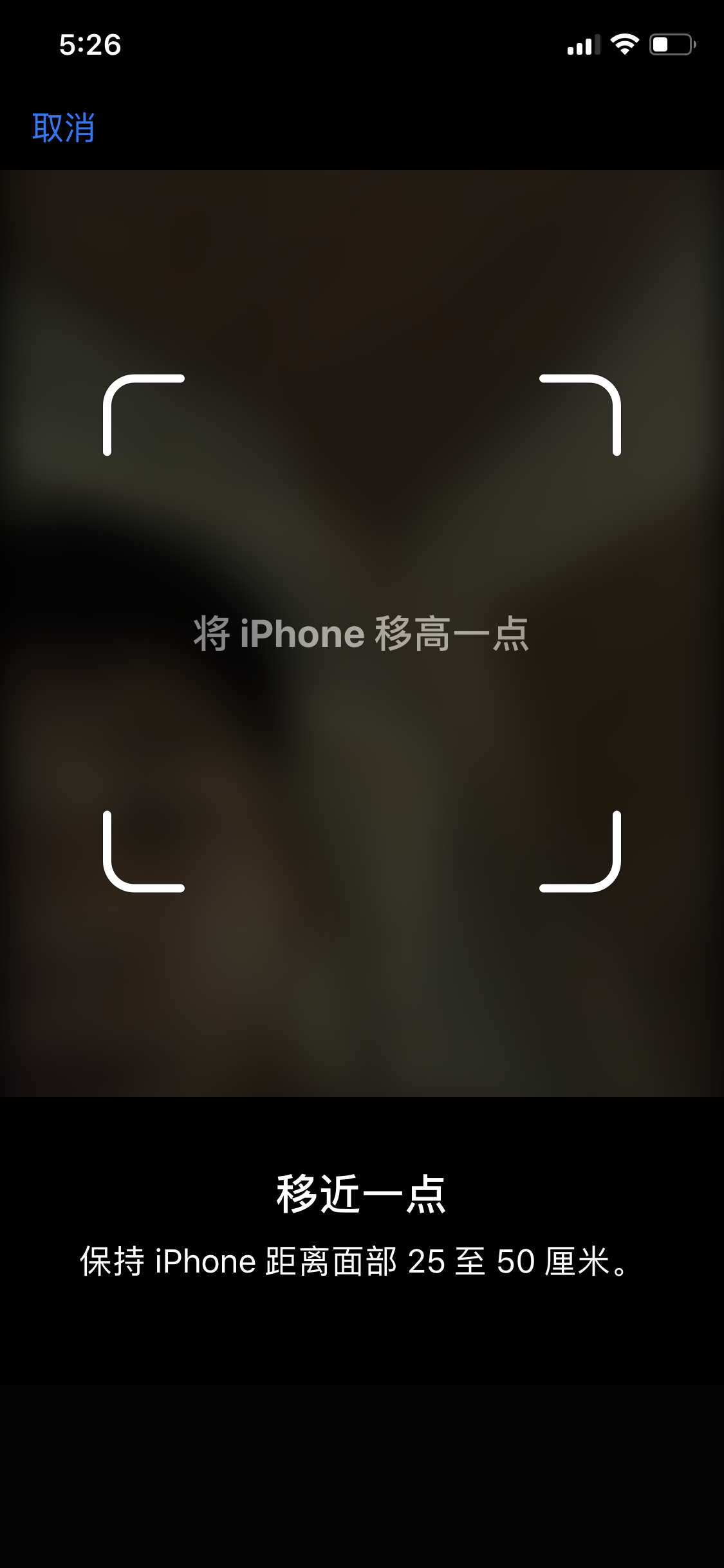 确保原深感摄像头能够完全扫描到您的眼睛、鼻子和嘴巴。