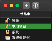 图中显示它需要“本地项目”,这是为iCLoud钥匙串而设计的放在本地钥匙串系统中的独立的钥匙串库,它可能基于各种原因,不同步或者设置问题,当然也可能是应用软件的设计问题。打开 钥匙串访问.app后,在左侧边栏观察,登陆和本地项目是否都处于解锁状态:
