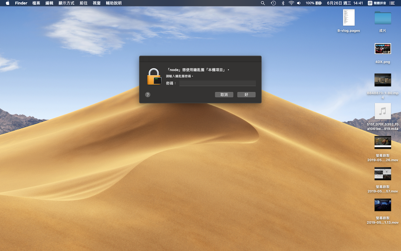 如果确认node不是可疑软件,那么继续;否则,检查本机安全,杀毒,甚至需要备份数据后,抹盘重装macOS系统