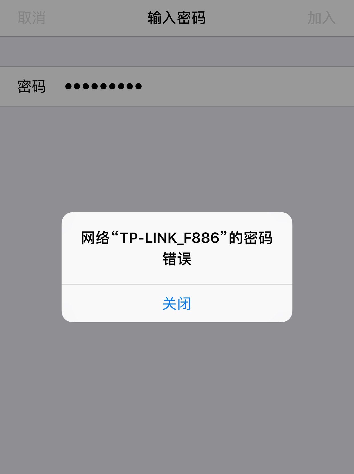 我试过重启和还原网络设置但都无效,距离路由器30cm处可尝试连接成功,但是离远一点后重新连接网络又是现实密码错误