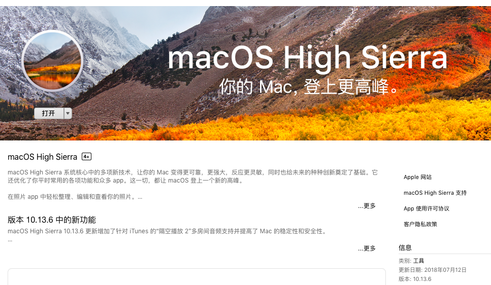 试试这个需要 macOS High Sierra,请使用这个 App Store 链接:获取 macOS High Sierra。,我看转到App Store显示 4.8G