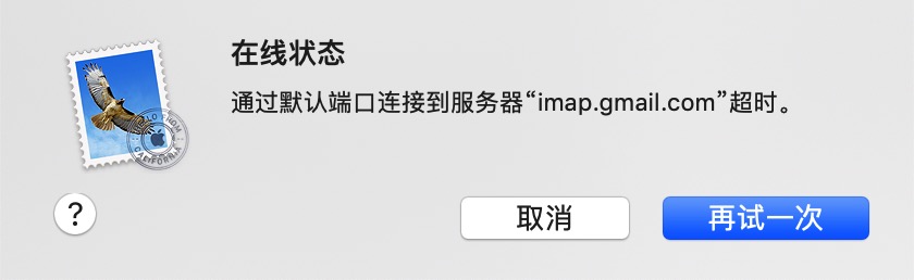 如果是在国内,应该是Google被防火墙挡住的原因,特别是imap.gmail.com这个网址和/或端口993/465/587被阻断了。虽然浏览器中可以浏览,因为使用的是https协议,并使用443端口。