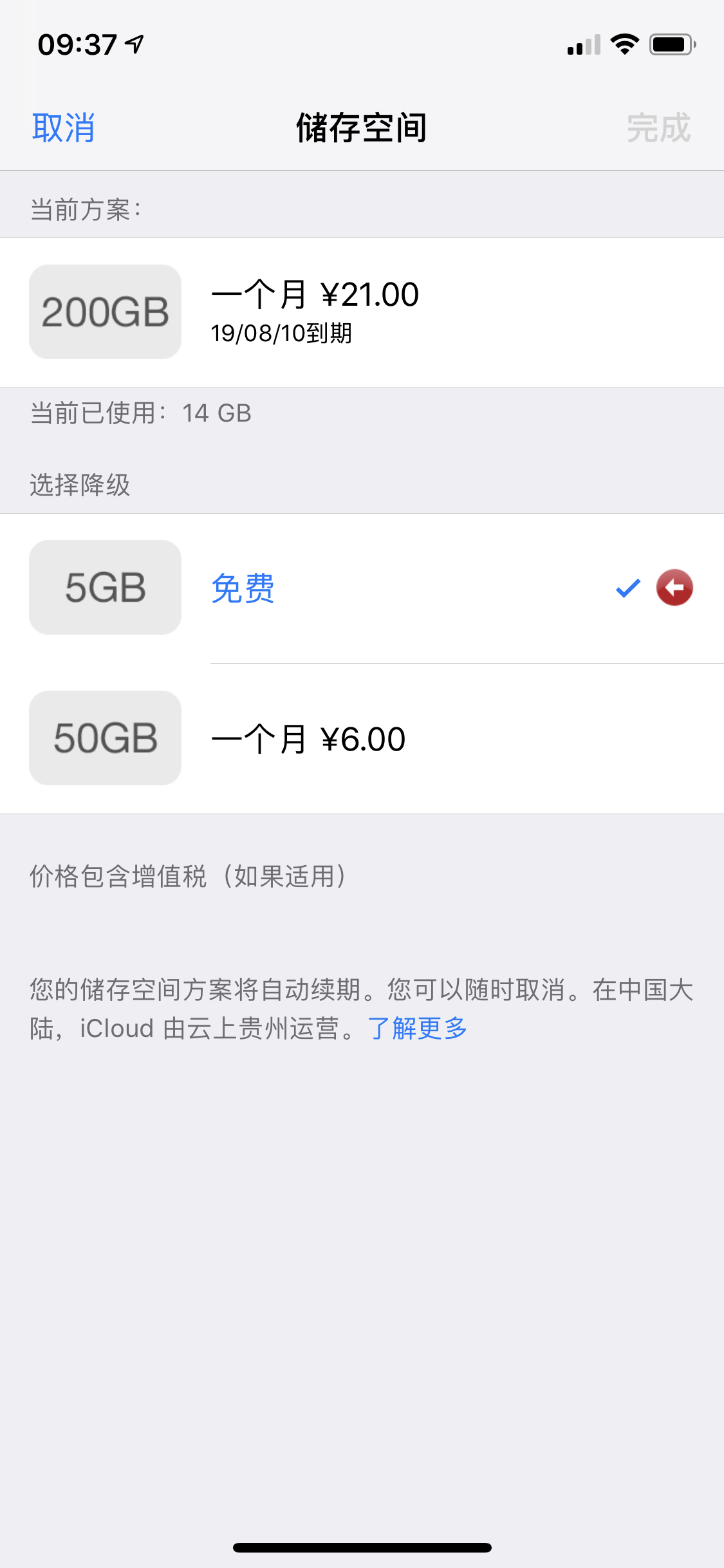 iCloud降级储存空间后依然扣费