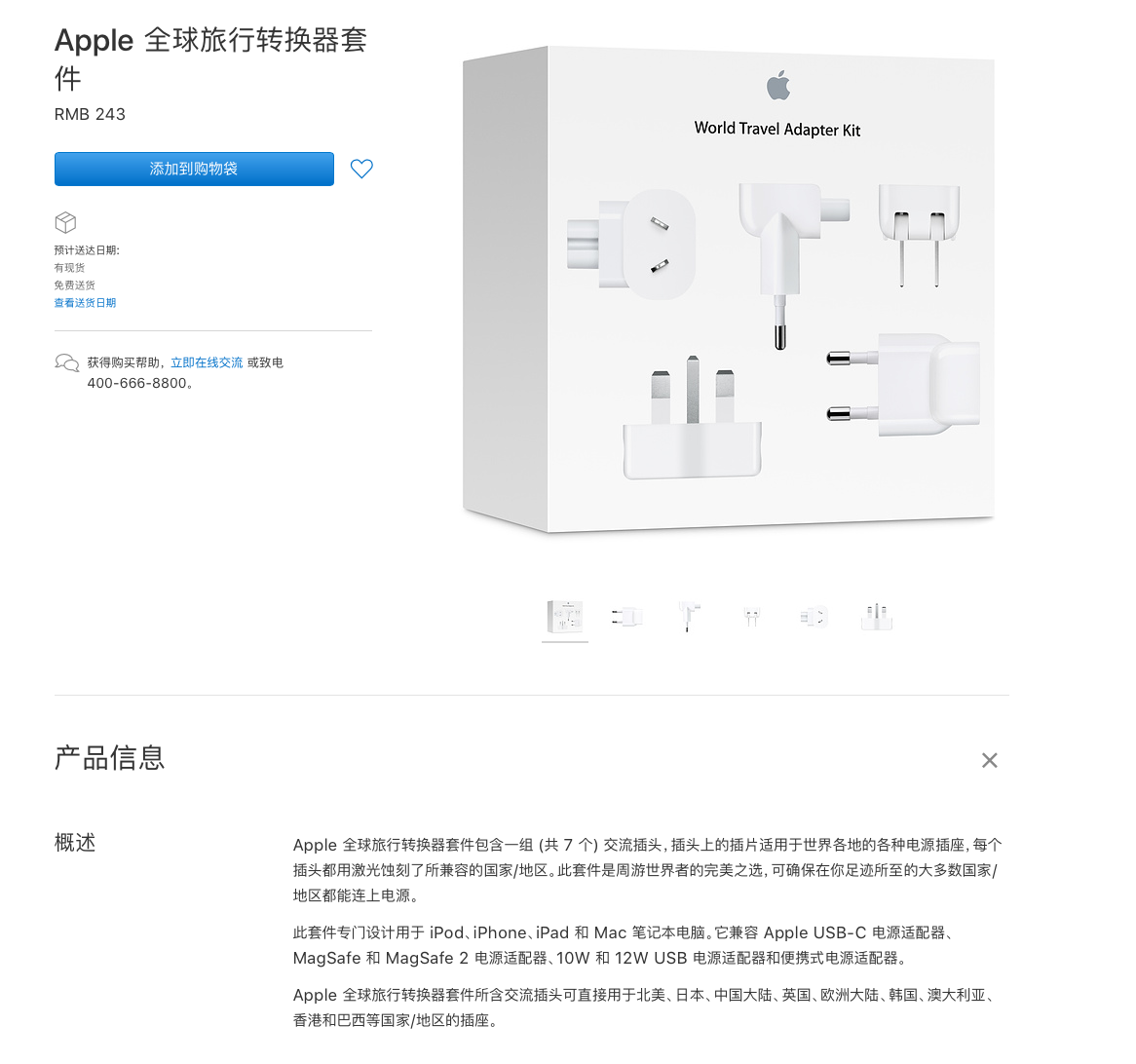 可以,官网就有,可查阅 Apple 全球旅行转换器套件 ,RMB 243 Apple 全球旅行转换器套件所含交流插头可直接用于北美、日本、中国大陆、英国、欧洲大陆、韩国、澳大利亚、香港和巴西等国家/地区的插座。