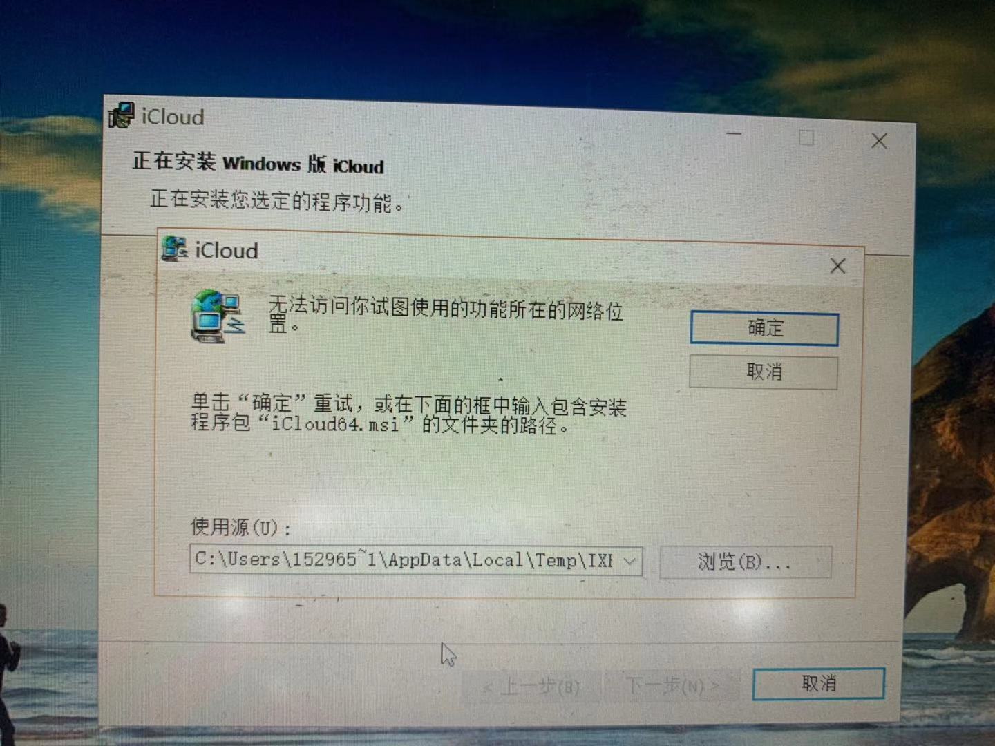到apple官网下载icloud的pc安装包,安装过程弹出如下提示框,按“取消”或关闭后提示无法清除旧版本icloud,然后开始回滚,安装失败。