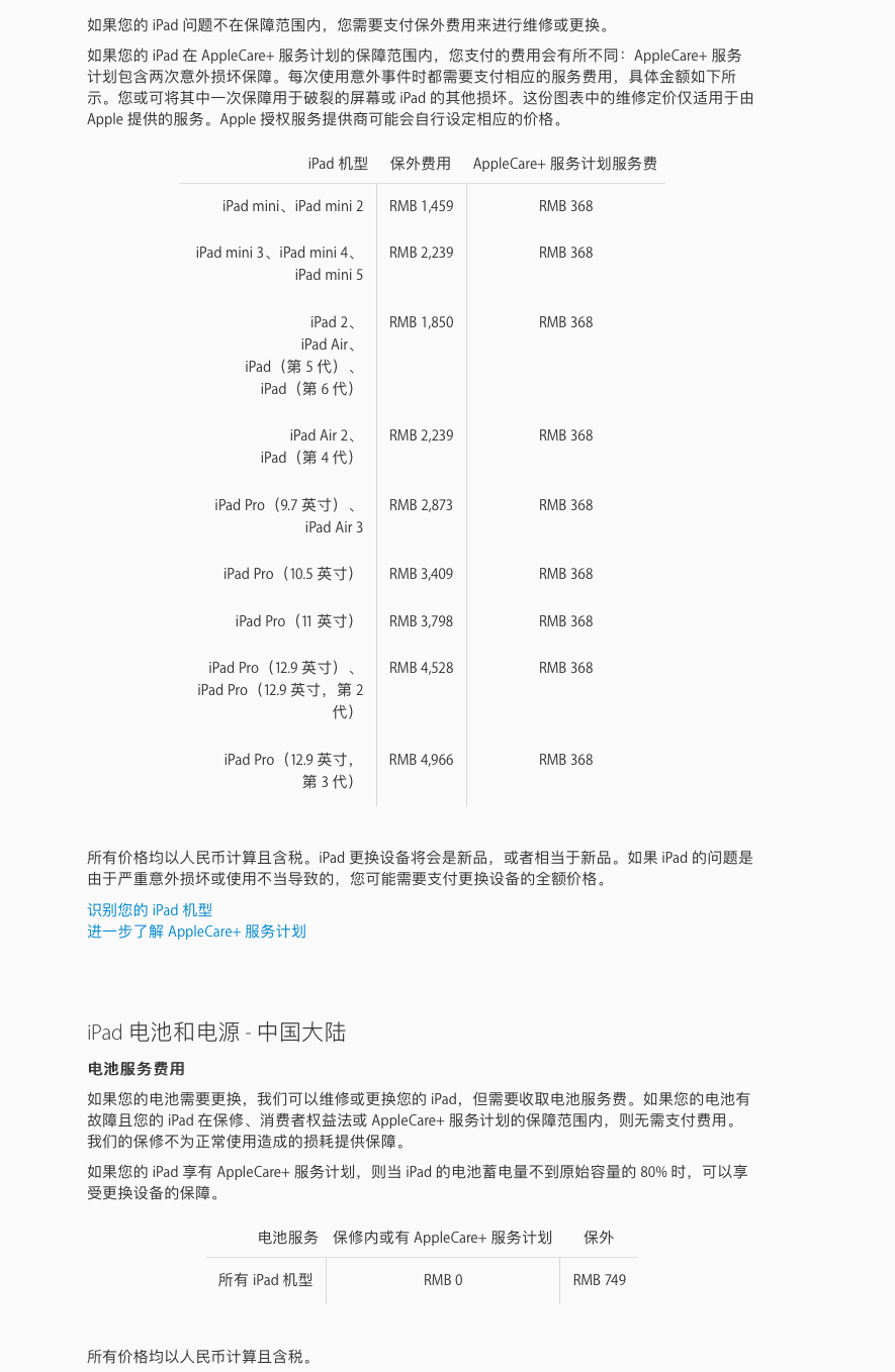 您好,如果只是电池问题,可以付电池的费用RMB 749更换iPad,如果有其它损坏需要付费RMB 1,850,关于维修可查询iPad 维修 - 官方 Apple 支持