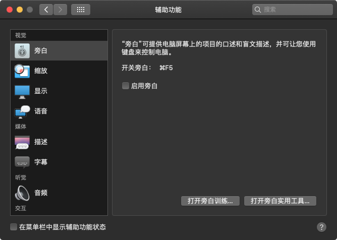 macos10.14.6如何关闭旁白功能的开机自启动?