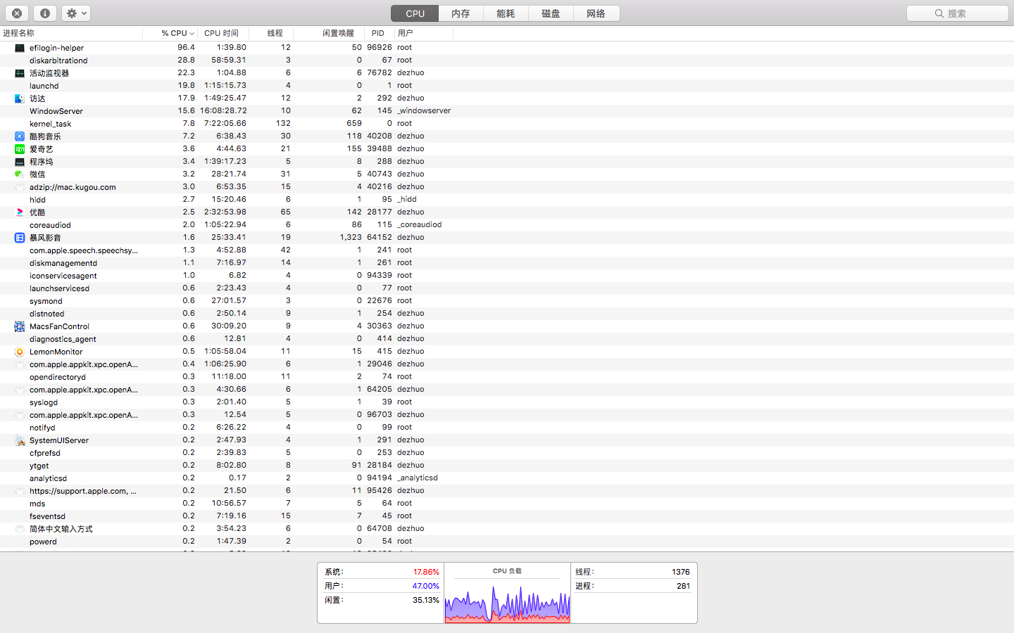 以下用户的用户个人资料: shmily shmily 用户级别: 级别 9 76,469 积分 2019年8月30日 上午7:25 回应 大伟112 了解应用如何影响 Mac 性能、电池运行时间、温度和风扇活动 - Apple 支持如果 kernel_task 正在大量占用 Mac CPU 资源 - Apple 支持如果风扇在 Mac 开机时全速运转 - Apple 支持在 Mac 上的“活动监视器”中查看 CPU 活动 - Apple 支持 回复 链接