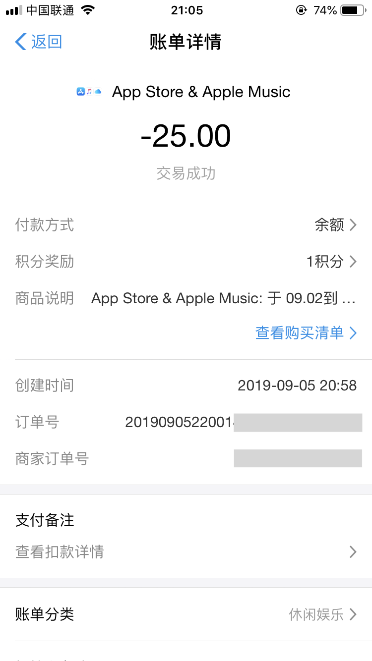 5.如果你的这个的APP没有退款选项,那么后边一定是显示的蓝色框,写着“iTunesstore支持”