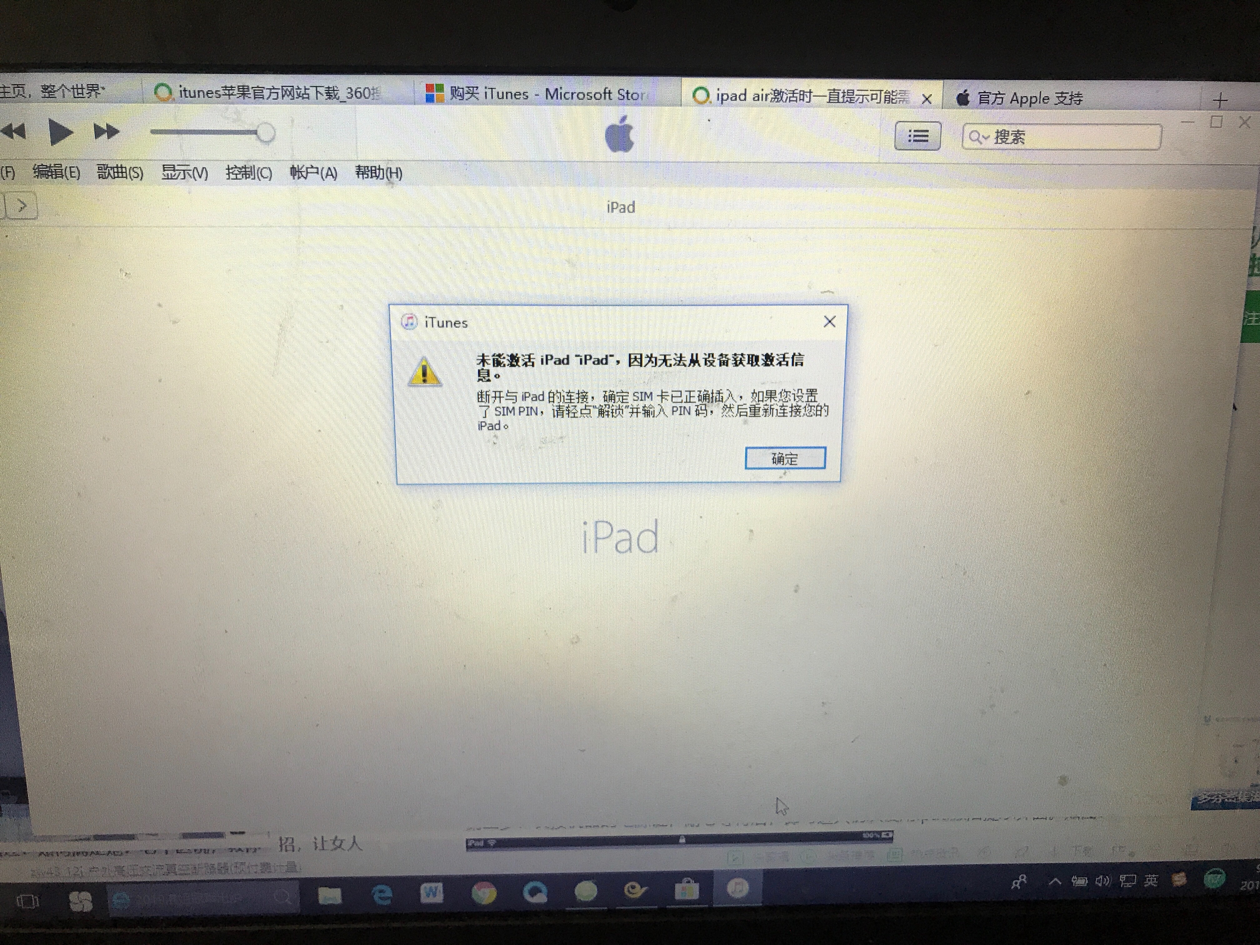 用itune就显示,未能激活ipad.因为无法从设备获取激活信息。