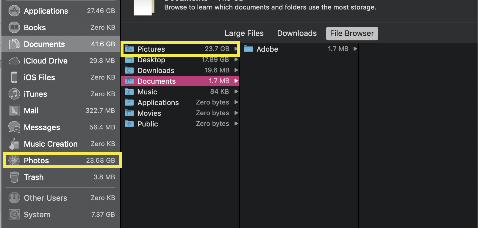 如图,照片占了双份内存,已经算在documents里面之后,photos又单另占了23.7g,要如何处理?