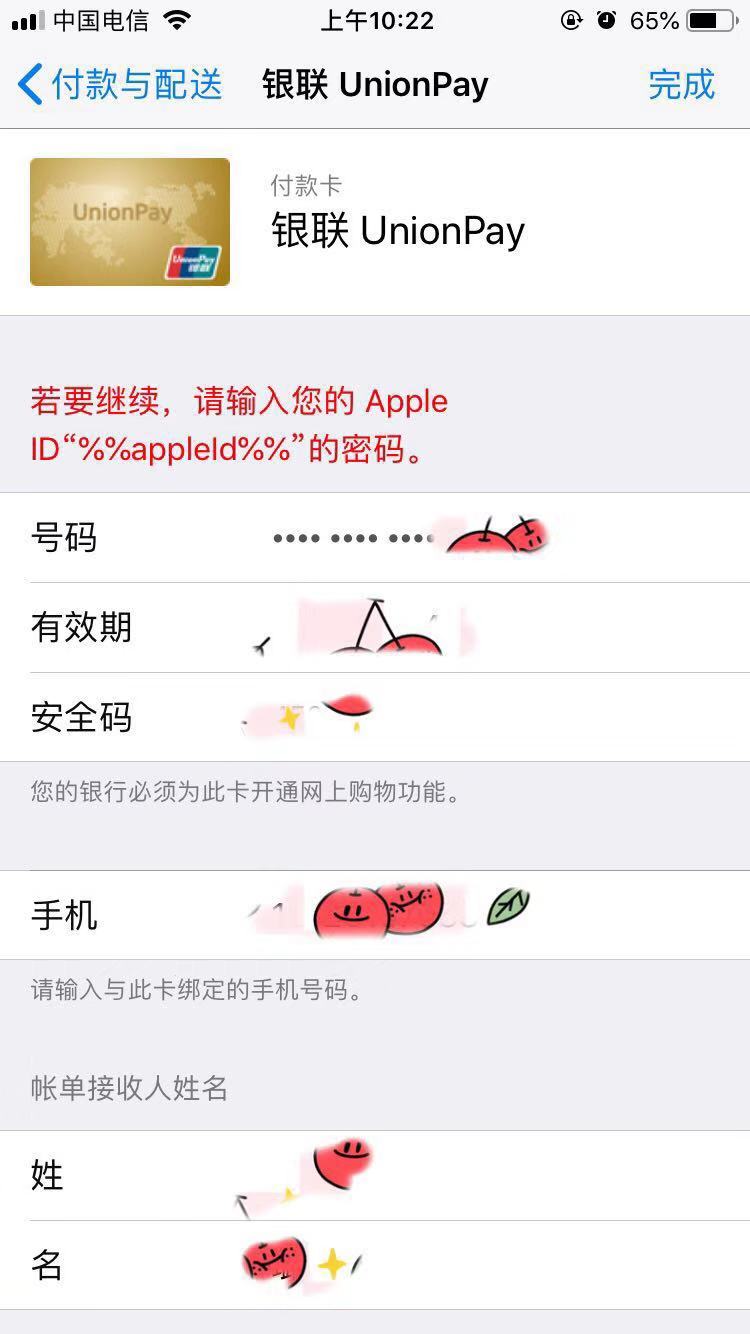 填完所有信息点击“完成”后,提示【请输入Apple ID“%%appleld%%”的密码】,但根本没有对话框可输入。