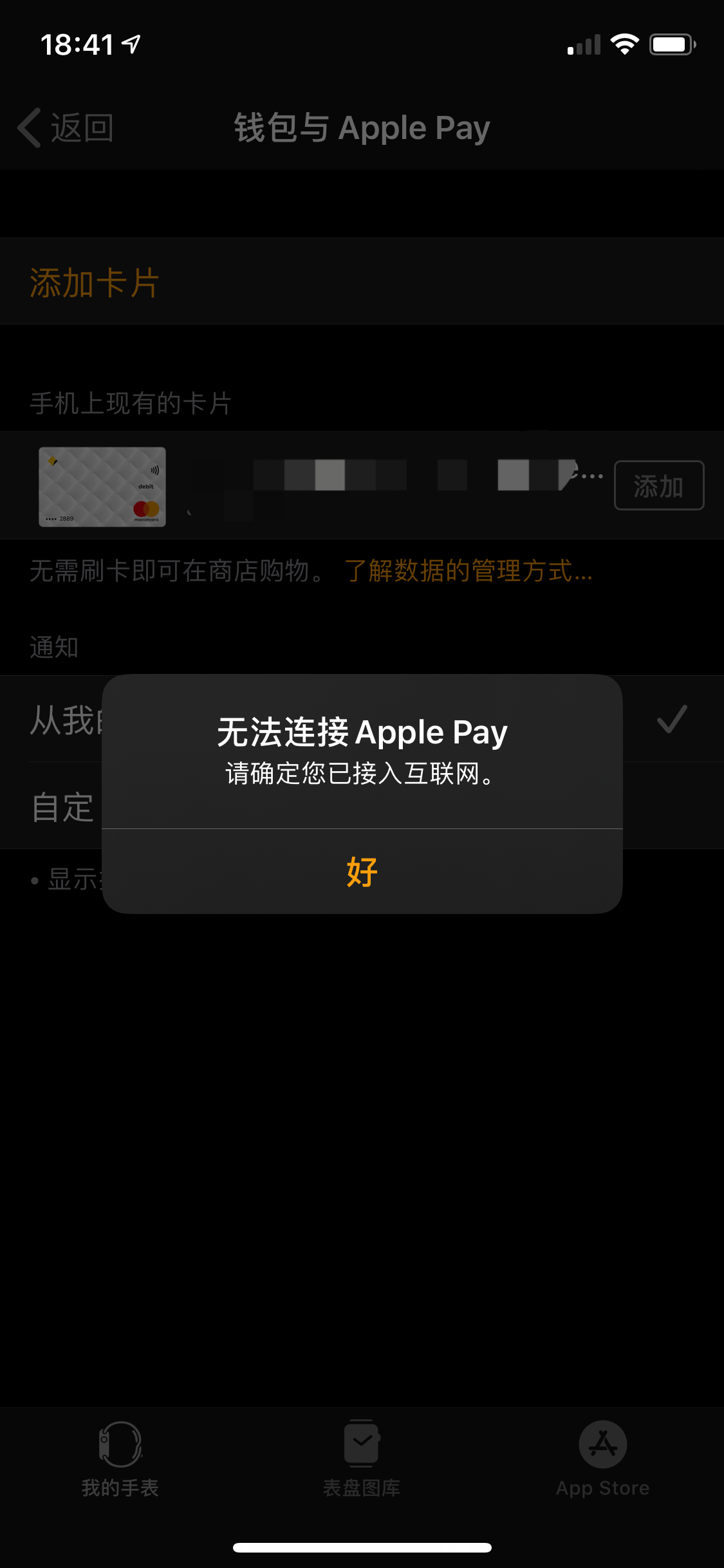 Apple Watch 5 无法添加银行卡。