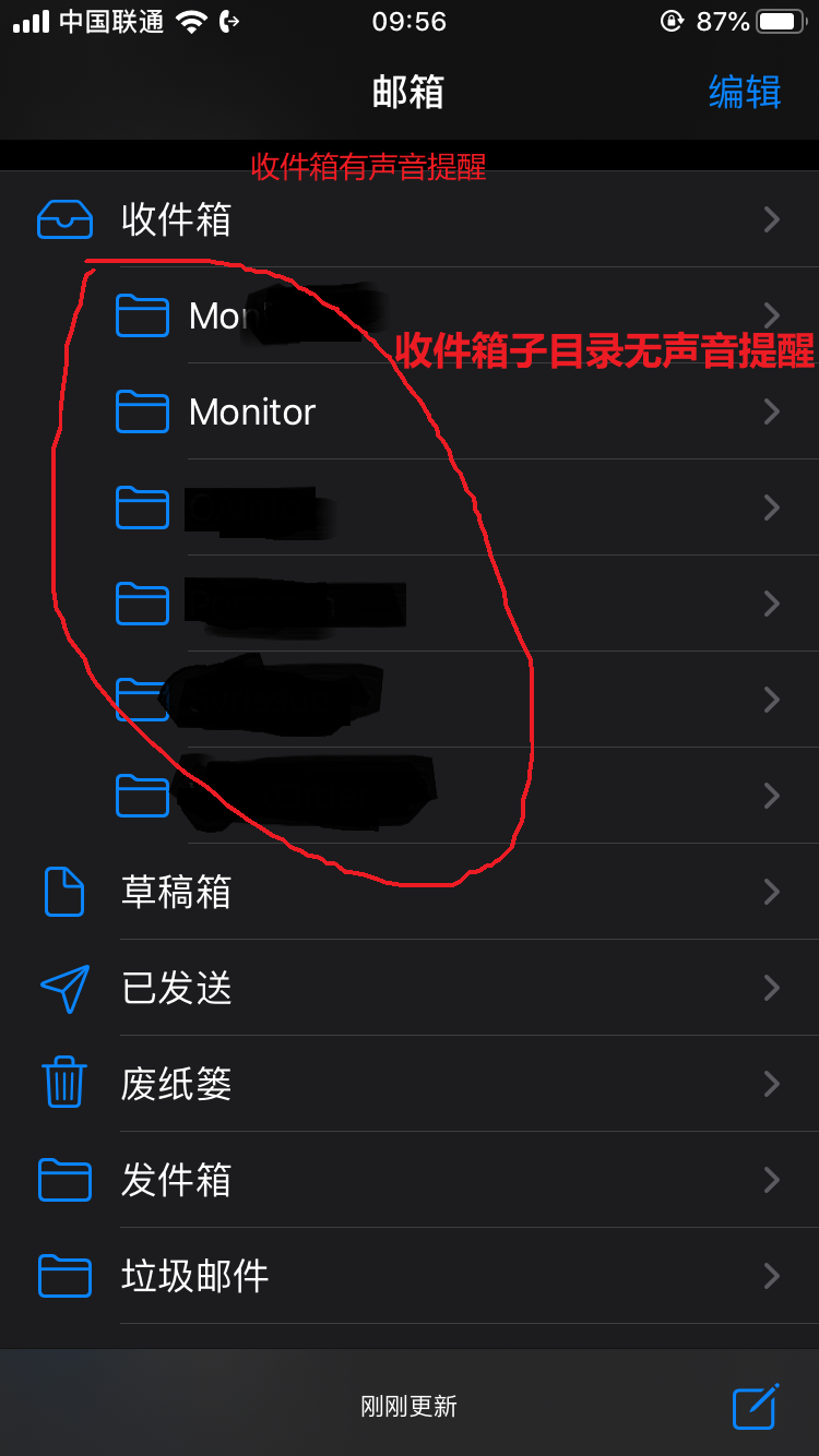 ios13.1 Exchange邮件服务器推送已被分组到收件箱子文件夹的邮件,没有声音提醒。