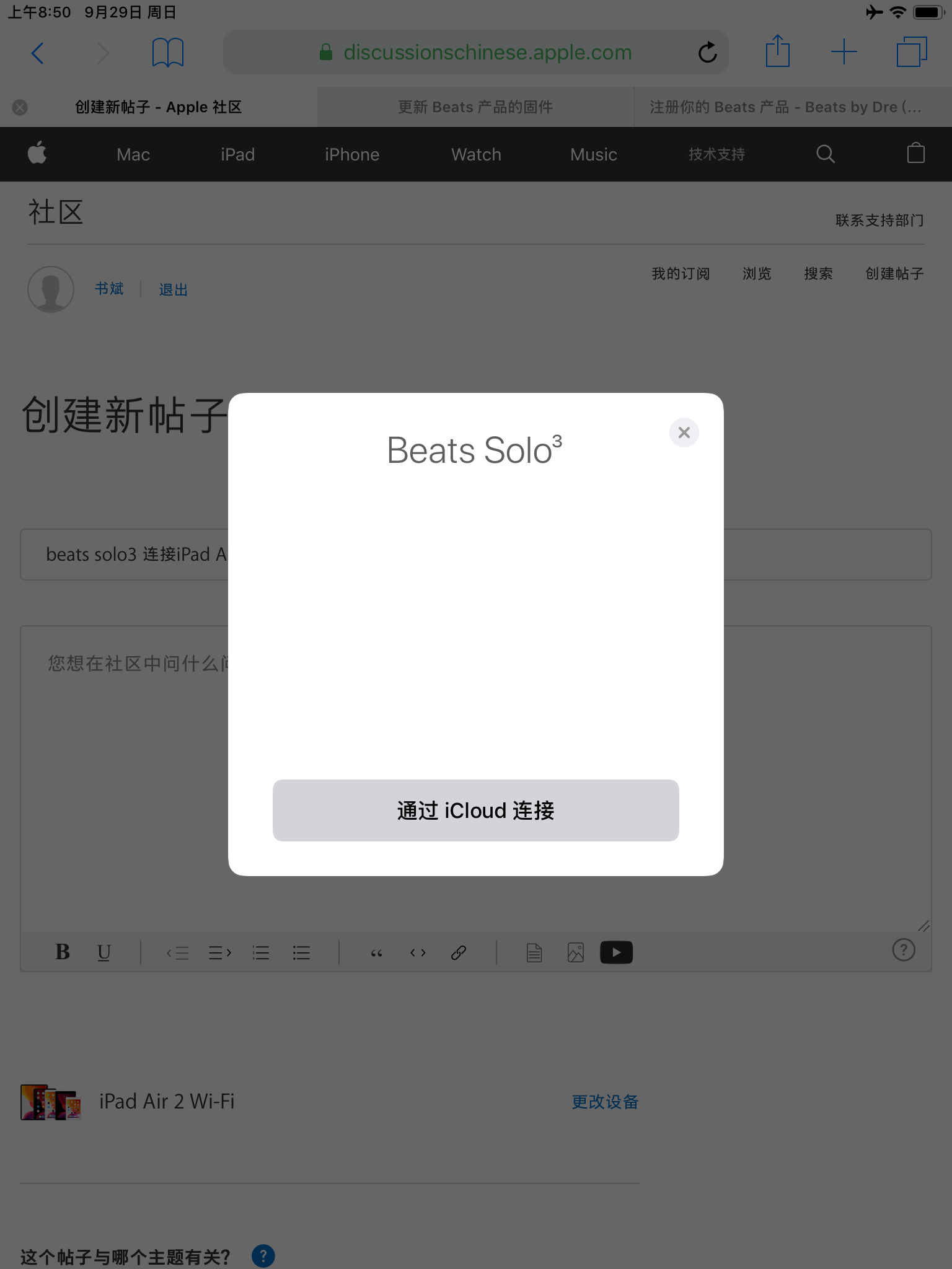 beats solo3 连接iPad Air2 2018版 有弹窗 但是没有耳机动画 怎么解决呀