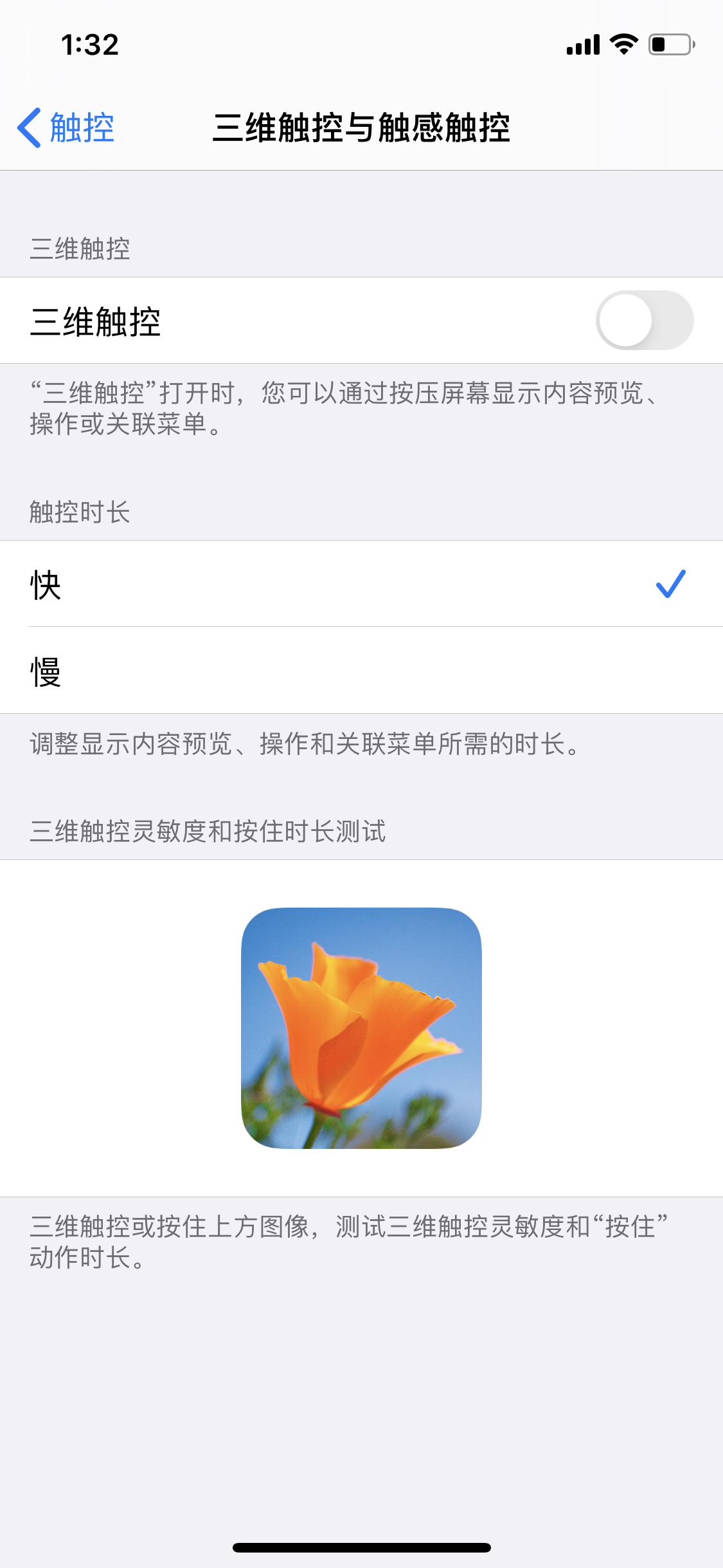 从升级到iOS13开始,三维触控就无法关掉了,无论是开还是关,三位触控都始终存在
