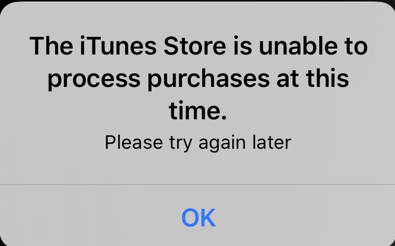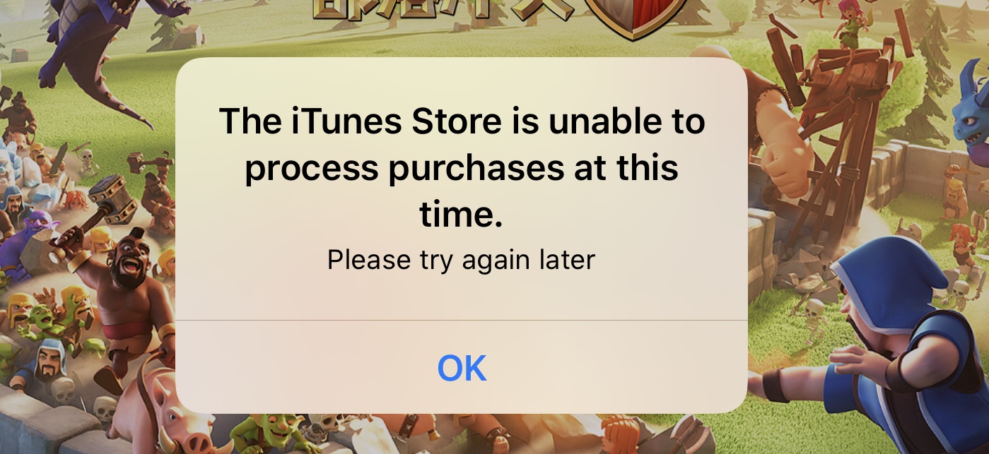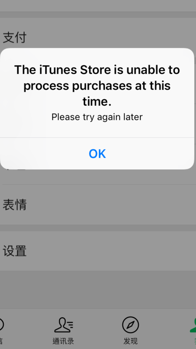 今天手机出现这个弹窗内容如《The iTunes Store is unable to process purchases at this time.Please try again later》