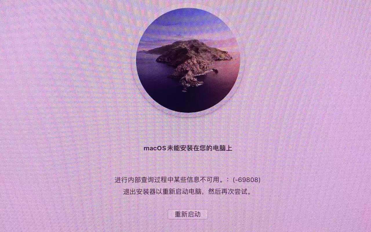 经过这一周的折腾,我于昨晚解决了。通过diskutil apfs list命令查看磁盘的卷宗是否存在VM卷宗且 ERROR -69808, 如果有,是无论如何都不能正常按照的,我经历过抹盘,当时没有展开显示卷宗,相当于只抹掉了系统卷宗,导致这个错误卷宗一直存在,给人的感觉是抹盘都还是不能正常安装。后来发现这个卷宗了,于是抹掉整个驱动器,就能正常安装了。