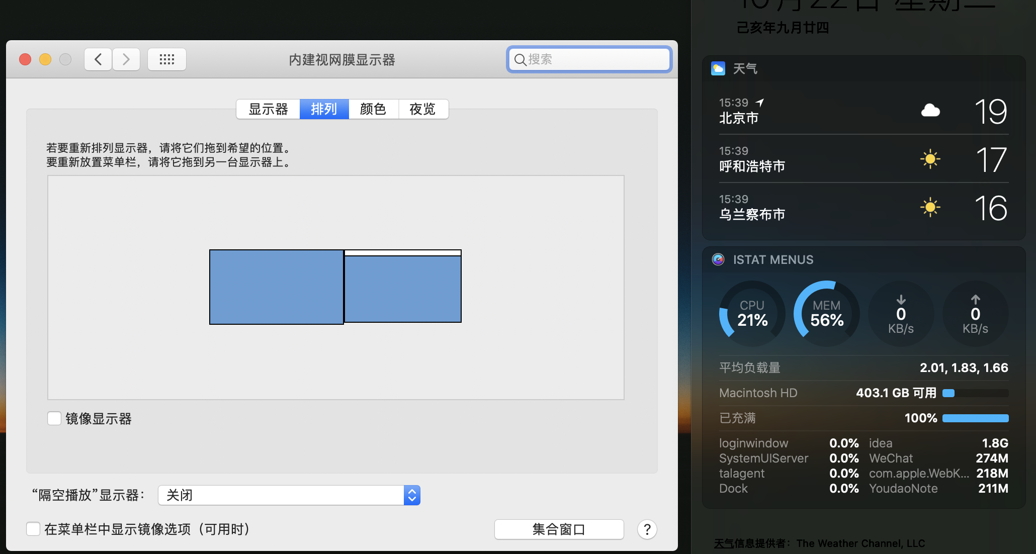 只要是插外接显示器且外接显示器位于上方,内屏就会出现通知栏模糊的情况