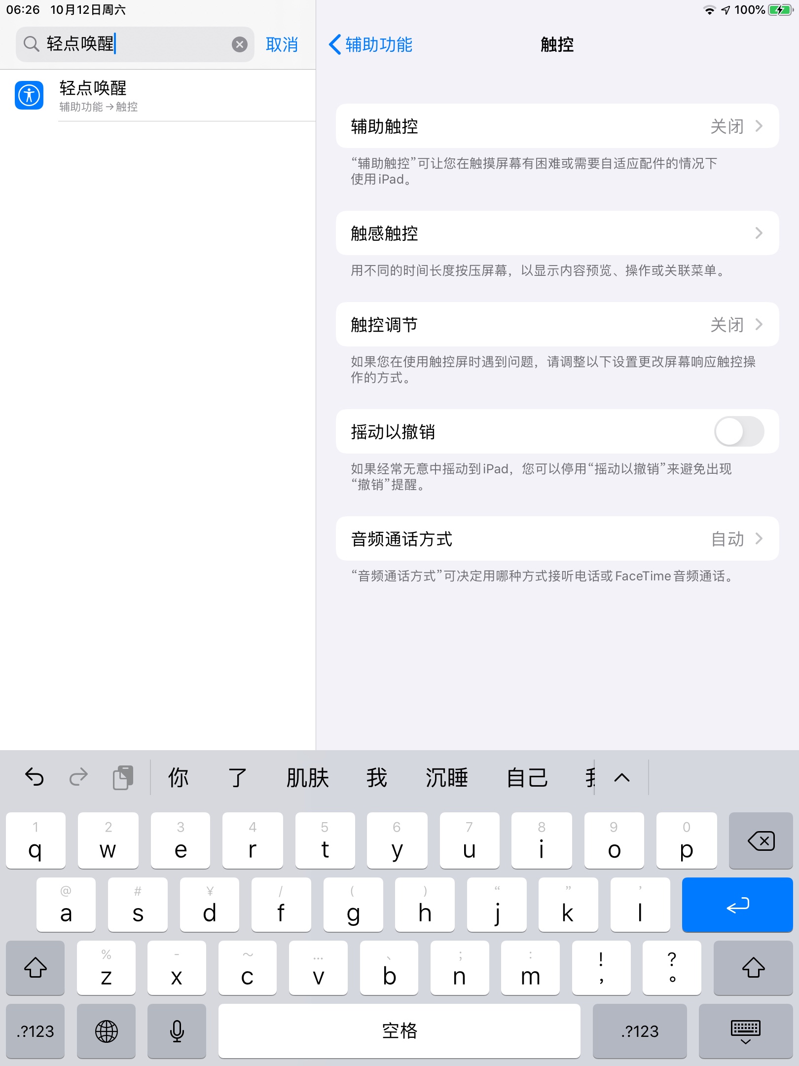 我今年9月分买的最新款iPad2019,好像没有“轻点唤醒”功能,在设置的搜索框里能搜索到,但是找不到那个功能(因为没有我的机型,所以选择的机型是错误的,请无视👇)
