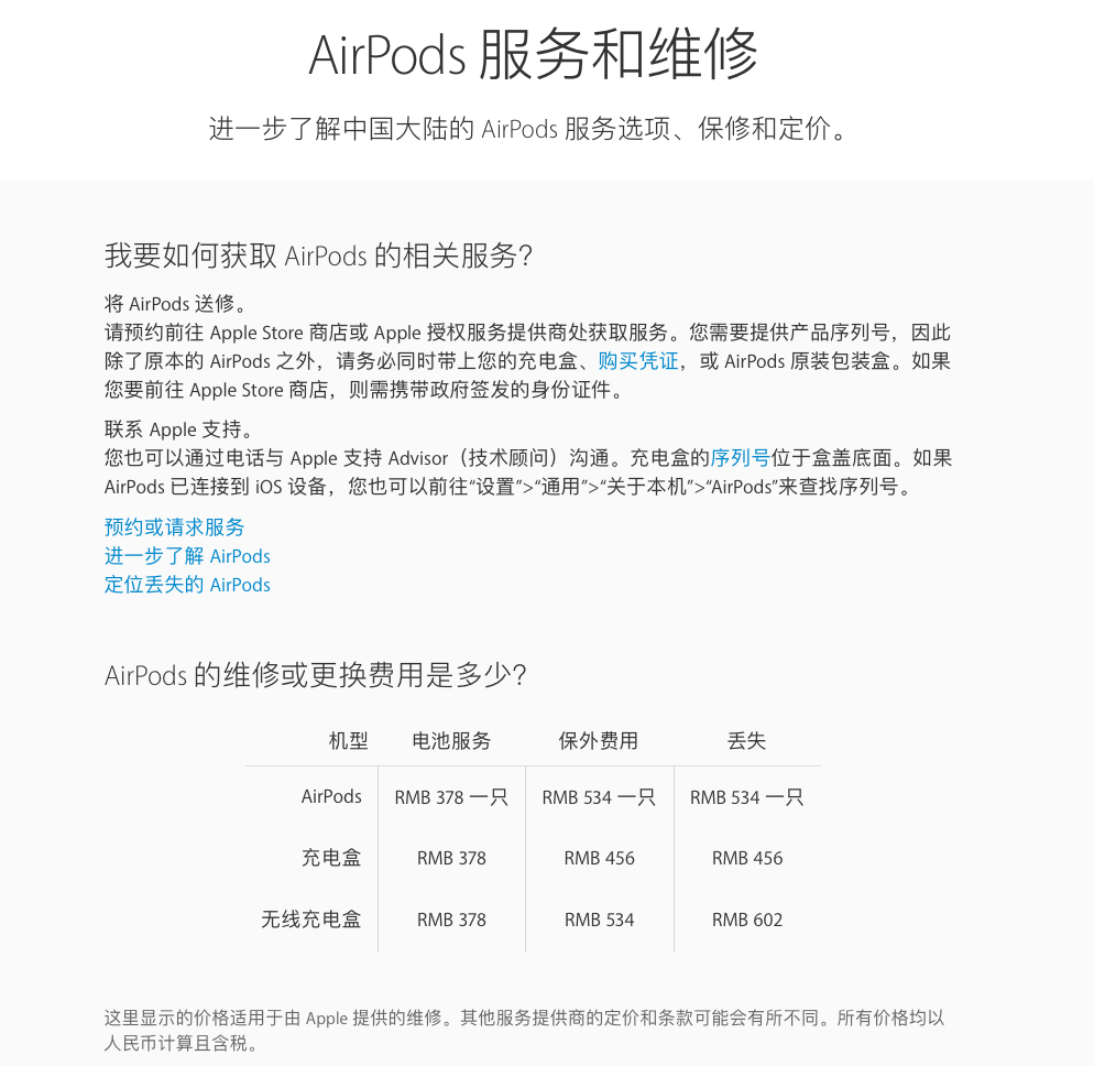 问题被标记为 排名最靠前的回复 以下用户的用户个人资料: shmily shmily 用户级别: 级别 9 76,469 积分 2019年10月13日 上午8:32 回应 风过山头 您好, 可以,费用为 RMB 534 一只可查询AirPods 维修 - 官方 Apple 支持前往 Apple Store 商店或 Apple 授权服务提供商处 回复 链接