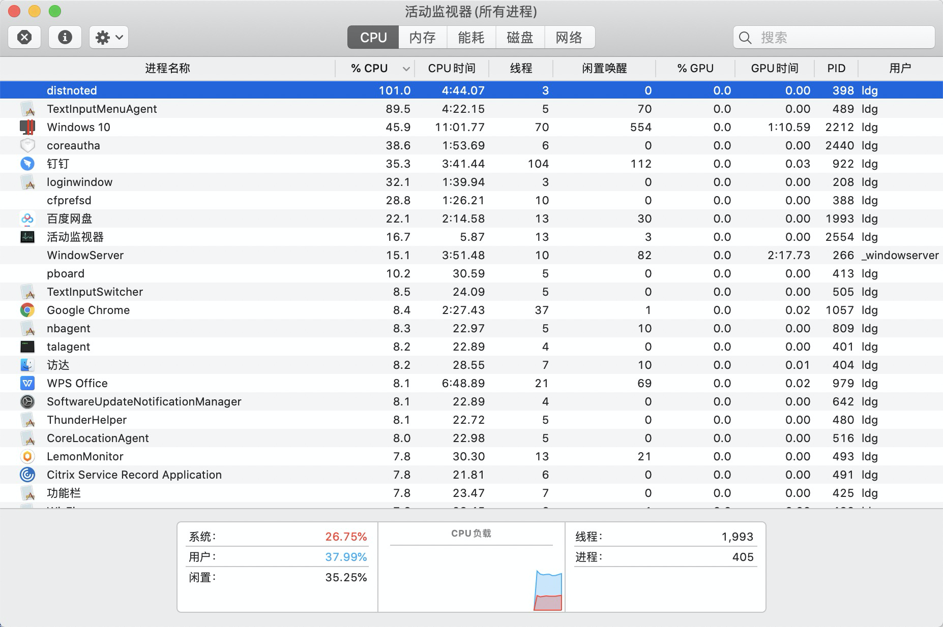 更新后, distnoted进程占用CPU达到百分百 导致电脑严重发热