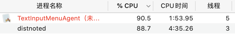 如图,更新Catalina后,TextInputMenuAgent经常不响应,而且,TextInputMenuAgent与distnoted经常占用CPU近100%,对能耗影响极大。