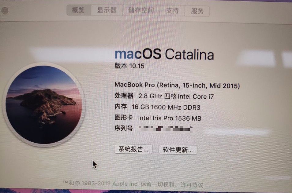MacBook Pro 15", macOS 10.15