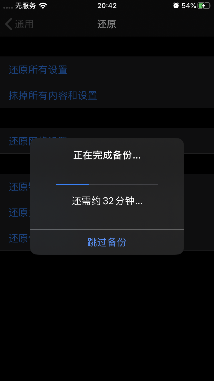 我在恢复出厂设置的时候,提示我备份。正常来说,应该立即计算总共需要备份的文件大小,然后计算出总共需要多少时间,结果,你们这是备份一个文件算一个时间吗?所需时间越来越长,太反常理了吧?而且最后等了1个多小时告诉我备份失败!!!害得我只能用ITunes备份!
