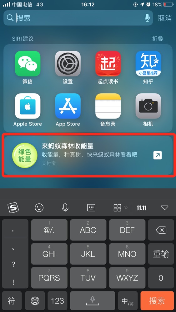 更新到iOS13之后,下拉的搜索里面,“SIRI建议”下面多出来了一个类似与广告似的东西(图片中红框圈出来的地方),总显示支付宝的东西,我应该如何关闭它?