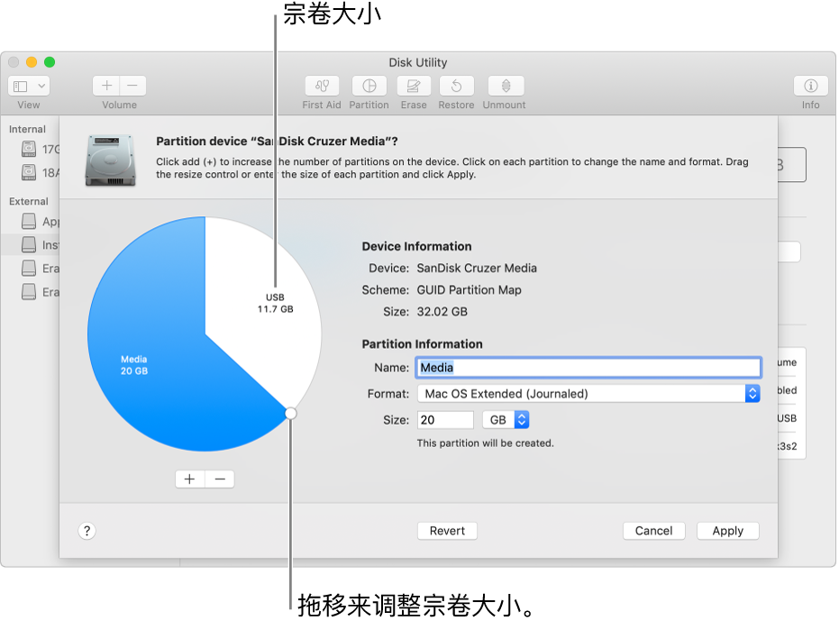在 Mac 上使用“磁盘工具”将物理磁盘分区 - Apple 支持