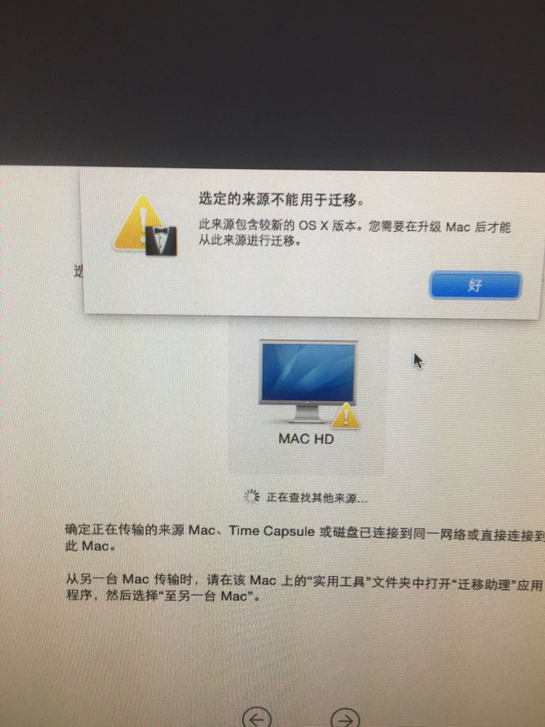 刚刚把macbook从High Sierra系统降级到EI Capitan系统,并通过Time machine时间机器对电脑备份。但是降级后由于系统版本低无法恢复备份。