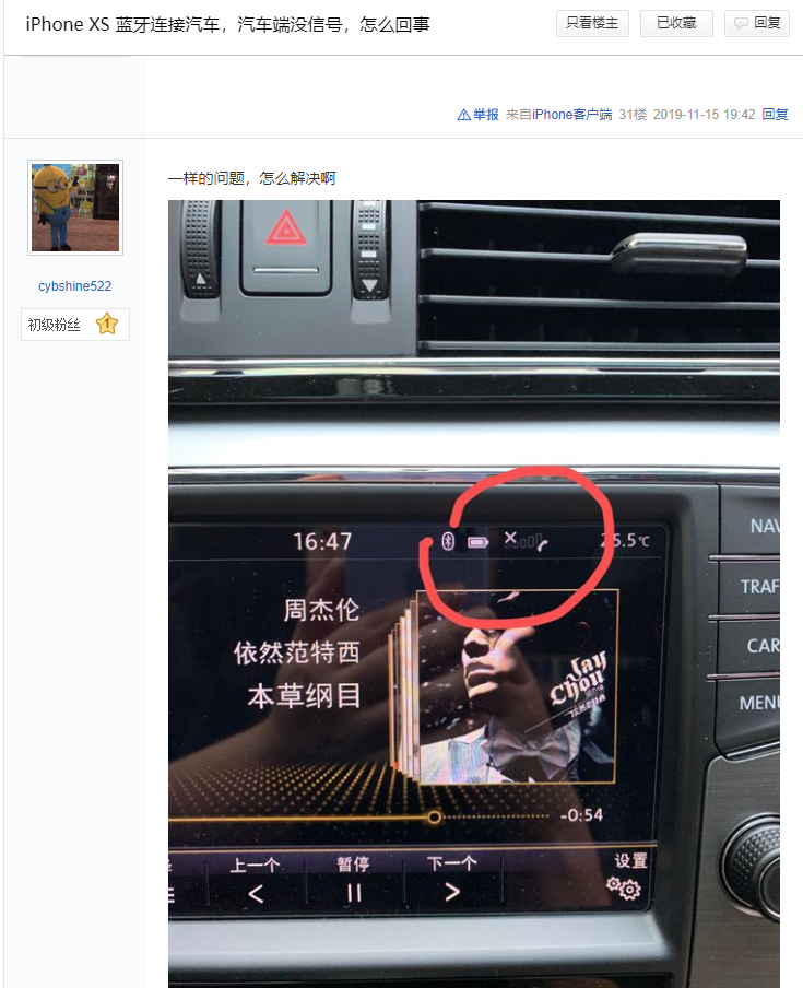 求助:iphone xs 蓝牙连接车机系统,车机系统显示无信号
