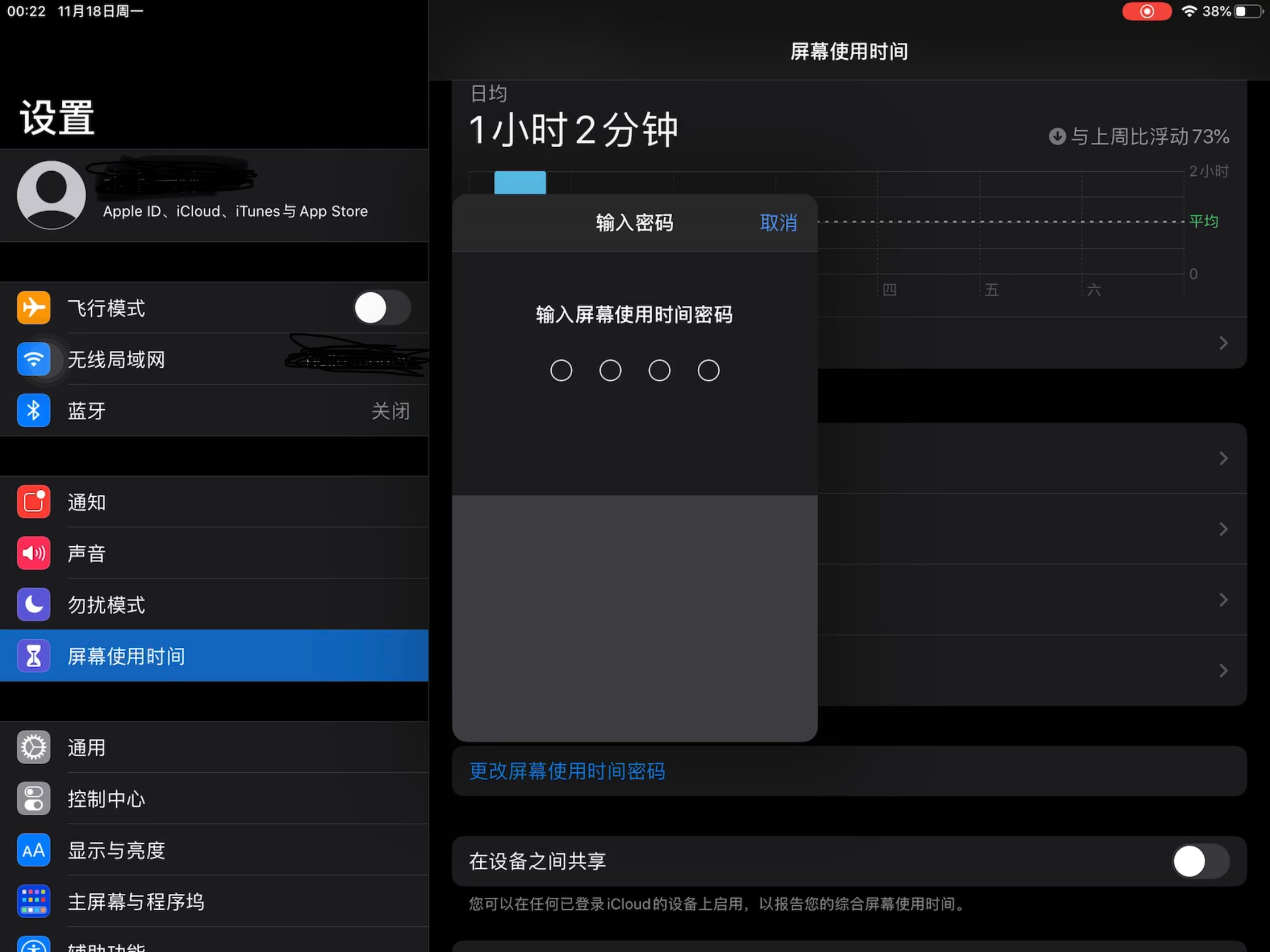 之前为了防止自己无节制玩iPad,就设置了屏幕使用时间密码,设置时开启录屏,然后随意输几个数字,这样密码就保存在录屏视频里了。