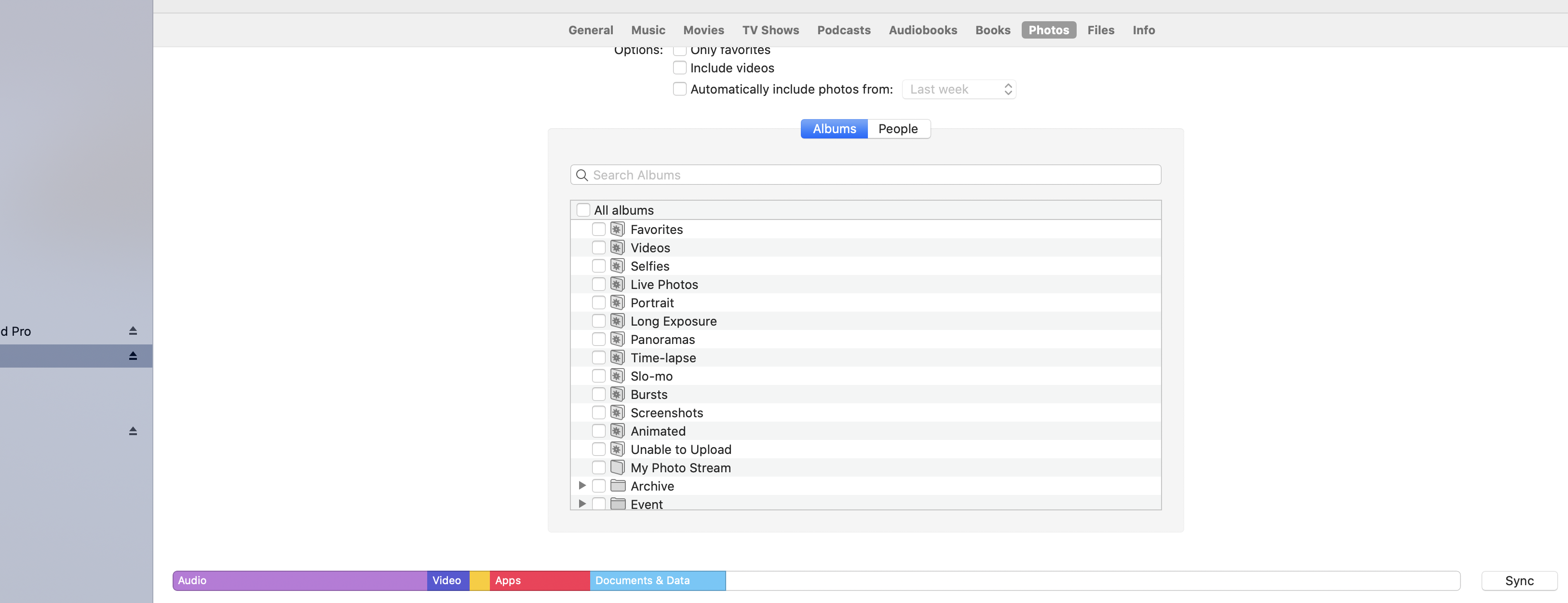 - 可以勾选特定相薄,可以点击同步。
