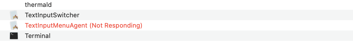 我在10月份更新系统到MAC OS Catalina Version 10.15.1 之后, 经常在使用电脑期间输入法突然无响应然后打开活动监测发现有两个和输入法有关的进程无响应并且占用了大量CPU, 导致风扇轰鸣, 耗电超快. 有时候强制关闭那两个进程可以恢复正常状态, 大多数时候需要重启电脑. 这是什么情况? 怎么修复呢?