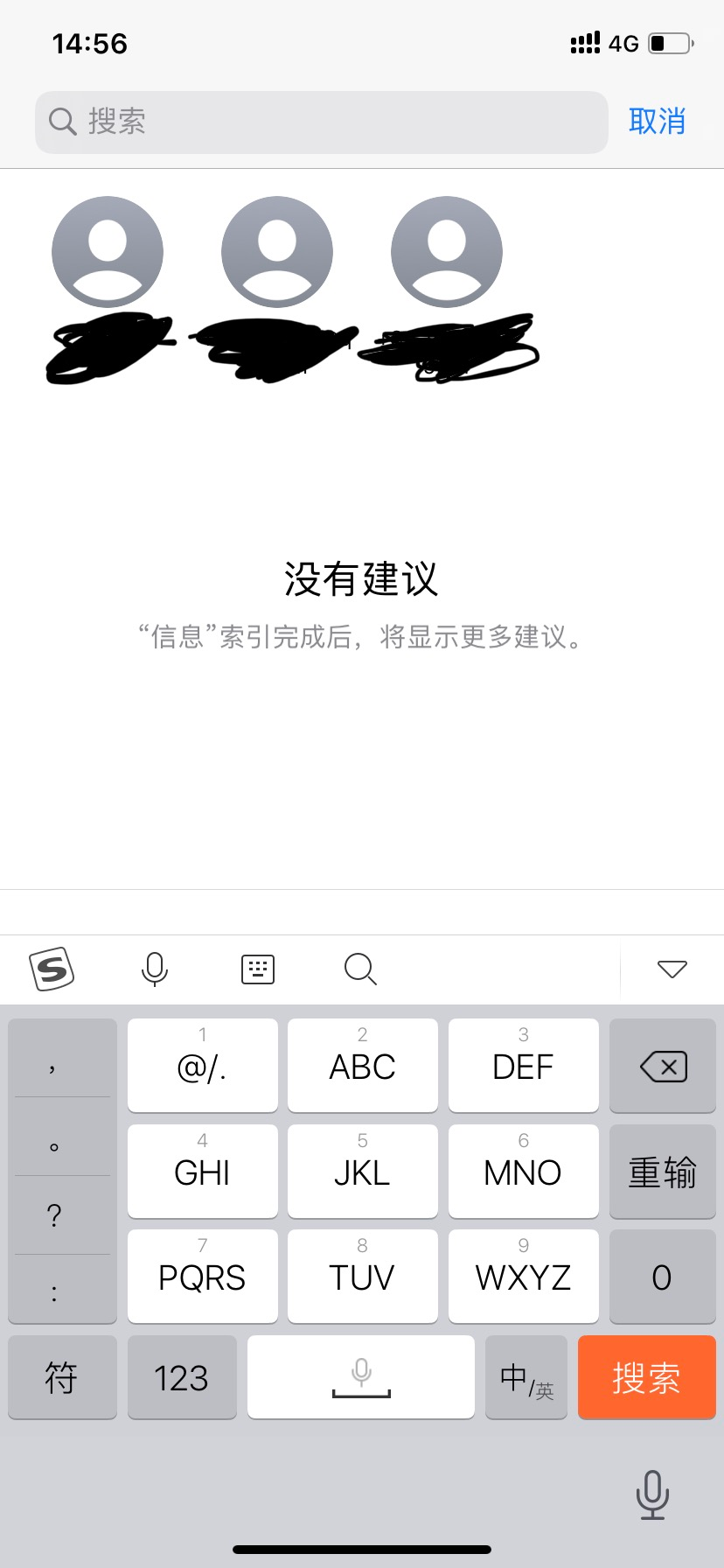 ios13 信息搜索时,显示没有建议,无法搜索,怎么办
