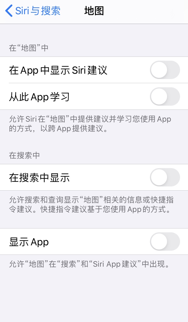 3. 关闭“在 App 中显示 Siri 建议”的开关。