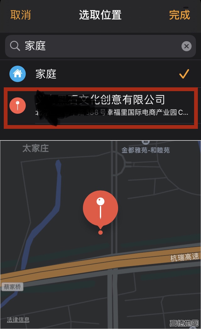 4. 重新打开“家庭”App,检查设定时是否还有此常用地点显示。
