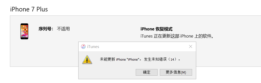 iPhone7p维护模式,想恢复数据,售后说升级软件一直报错14