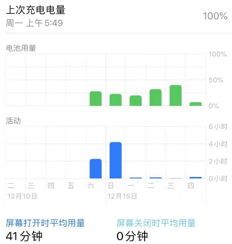 假设我周三的电池用量(绿色的柱状图)对应的百分比是40%,