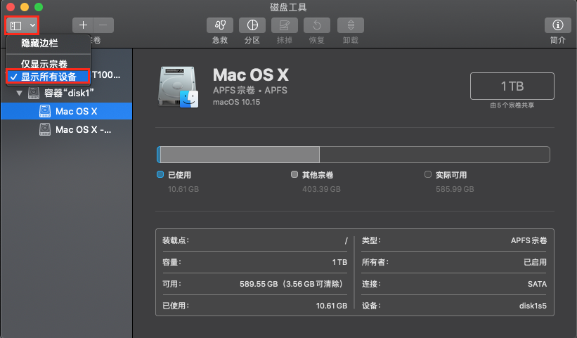 如果方便,提供一张磁盘工具界面的截图参考一下(注意在上角“显示”中勾选“显示所有设备”)