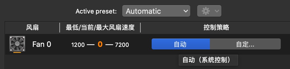 但是使用系统自动的控制策略,且温度不高时,风扇的转速会是0rpm,完全不工作,但温度高时可以正常工作