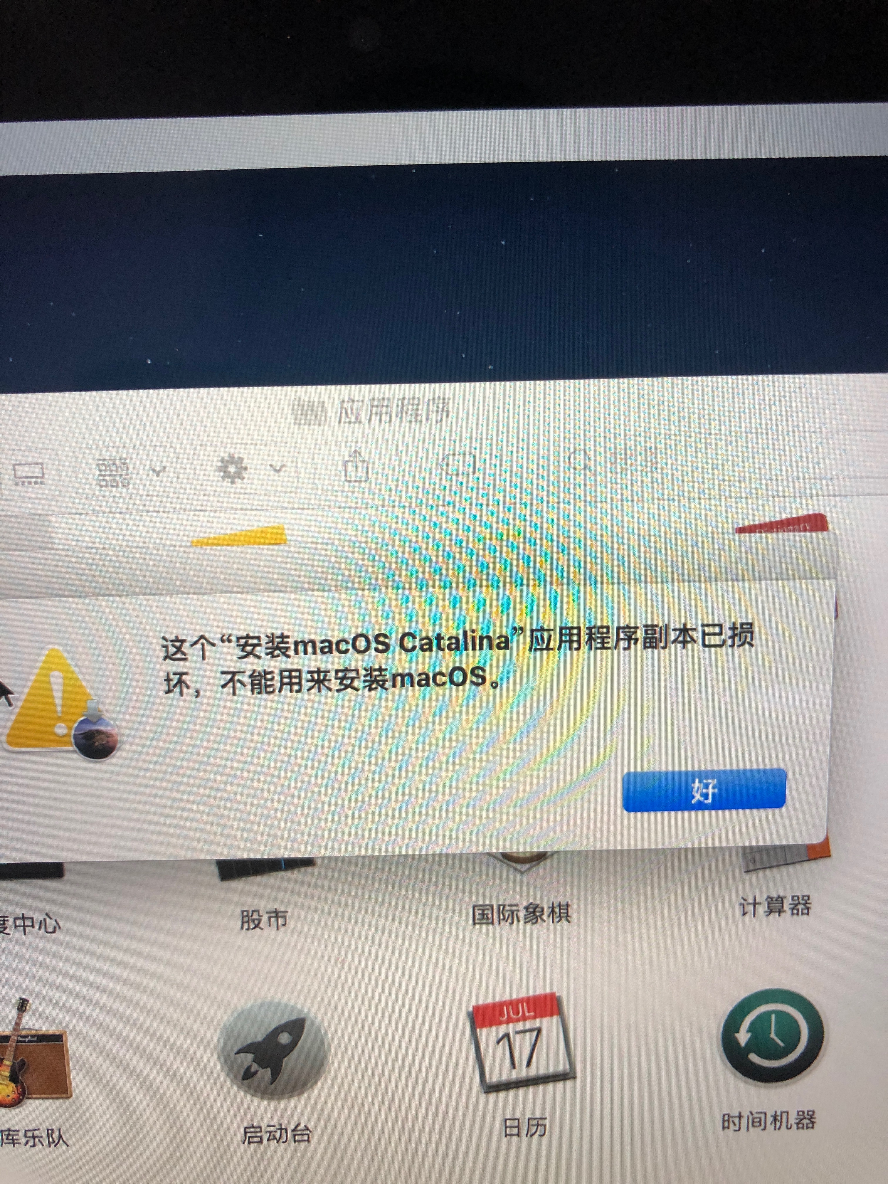 这个“安装macOS Catalina”应用程序副本已损坏,不能用来安装macOS。