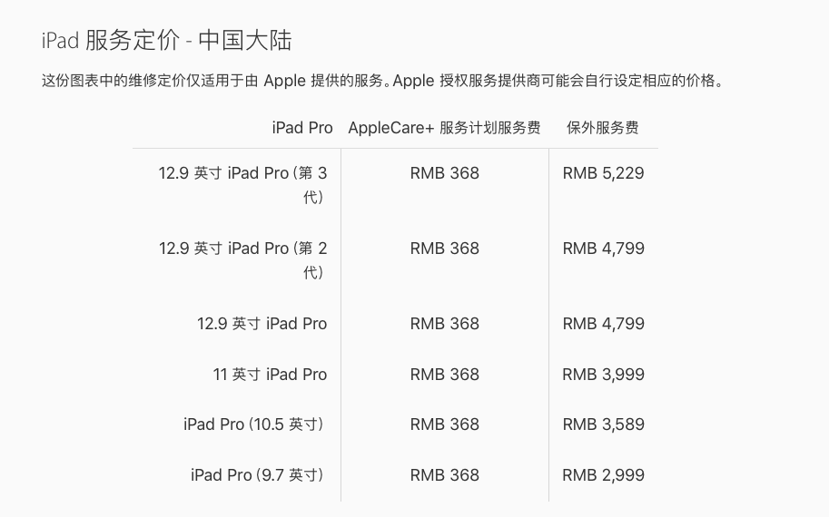 屏幕漏光属于保修范围,国行的iPad主要部件保修两年,屏幕为主用部件,如果设备过了保修维修费用为RMB 4,799