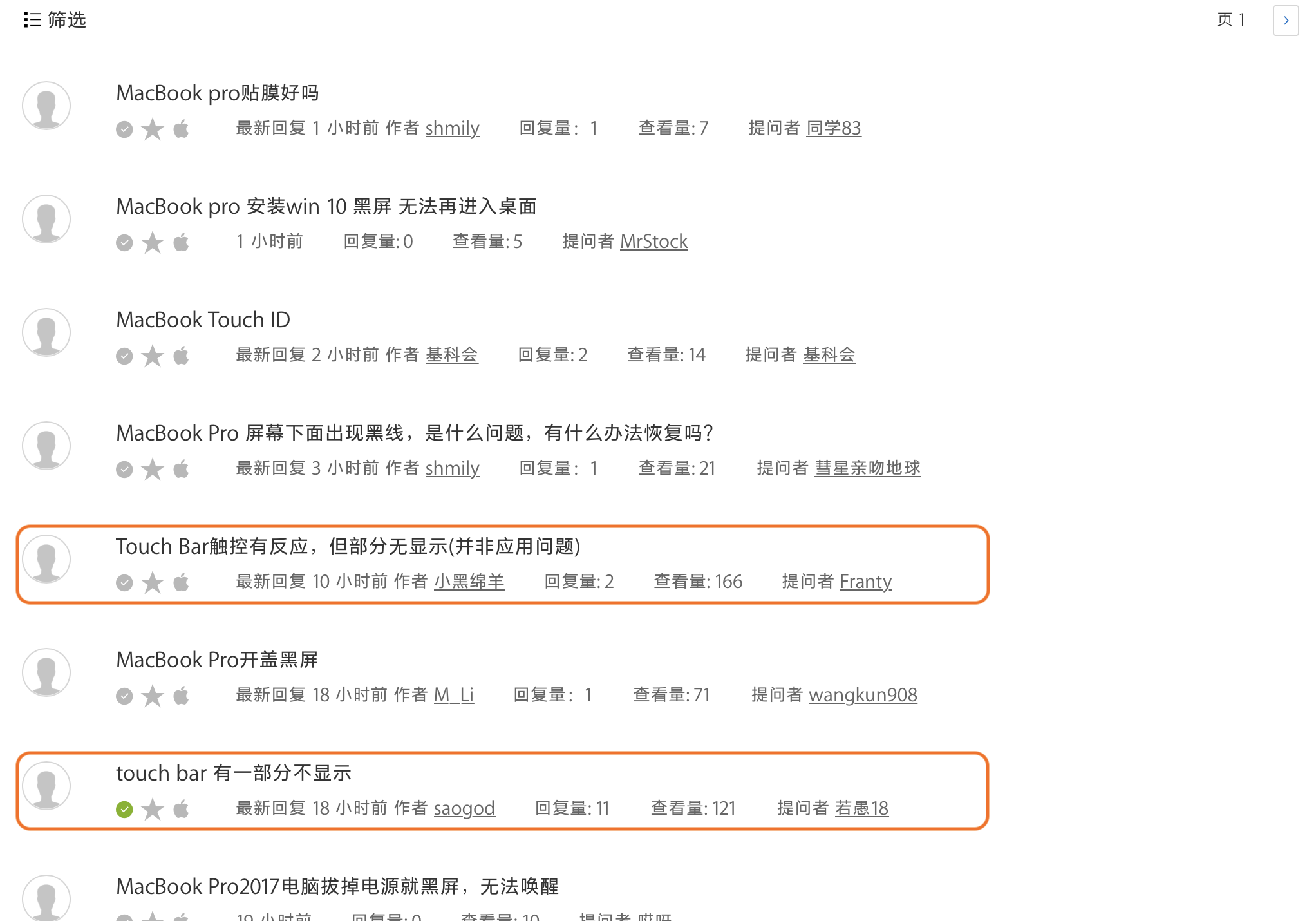 2、案例中大部分人电脑的Touch Bar在日常使用过程中没有遭受过挤压,碰撞或液体侵入等人为因素的干预。