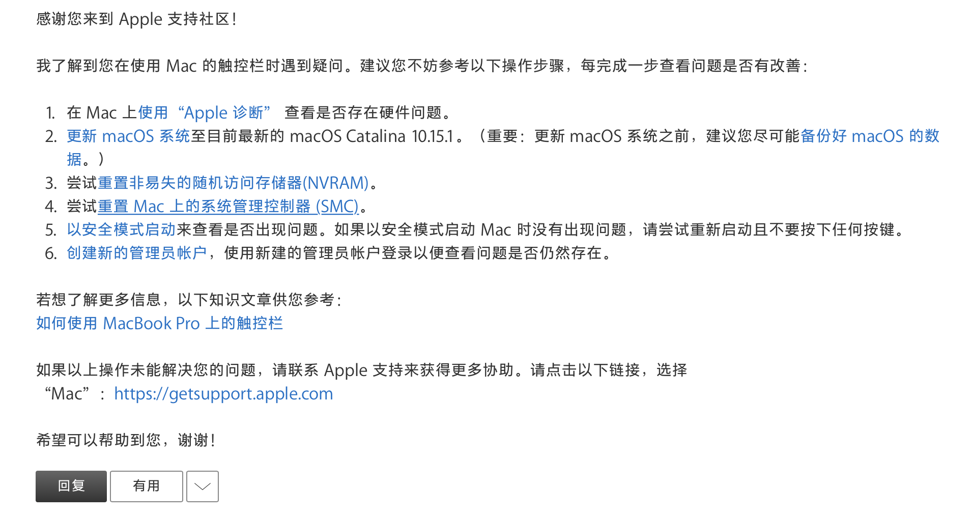 关于Touch Bar 显示故障的讨论