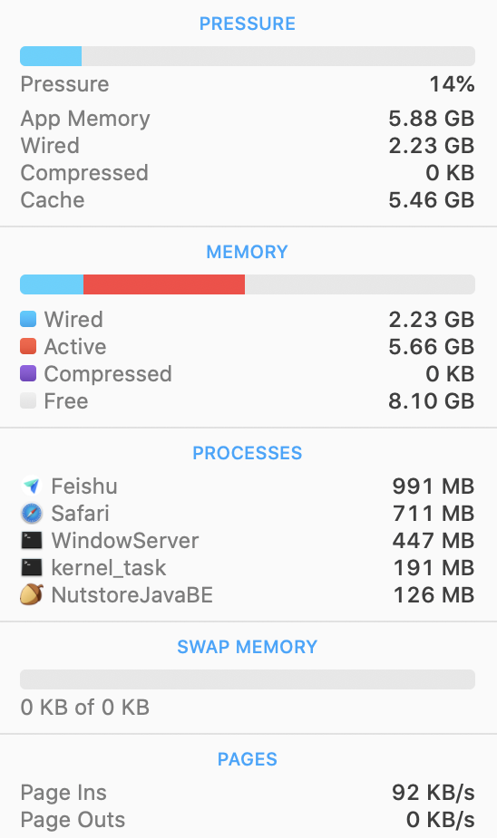 我在使用了一款知名清理软件的释放缓存功能后,题中的两项缓存全部被清零,且之后一直没有被启用。我猜测这两项缓存全部被清理软件关闭了,我希望能够重新启用交换缓存(swap memory)和压缩缓存(compressed memory),我该怎么操作?请求帮助,谢谢