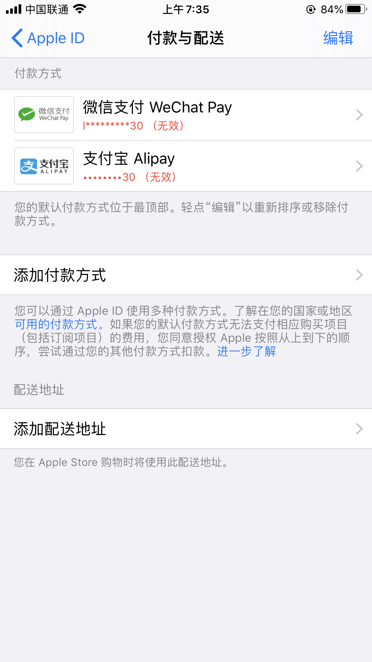 以下用户的用户个人资料: shmily shmily 用户级别: 级别 9 76,469 积分 2020年2月2日 下午9:54 回应 栾彦龙 可参考如果您的付款方式在 App Store 或 iTunes Store 中被拒绝 - Apple 支持更改、添加或移除 Apple ID 付款方式 - Apple 支持 回复 链接